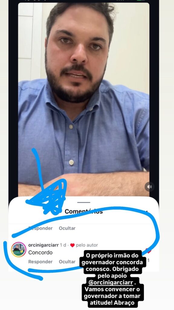 O debate político em Roraima ganhou um novo capítulo após o irmão do Governador Antonio Denarium, Orcini Garcia, demonstrar apoio público ao Deputado Estadual Cláudio Cirurgião (União) em comentário no instagram.