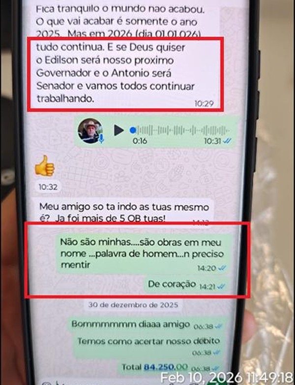 A PF também encontrou uma conversa no WhatsApp entre Clóvis e um empreiteiro. Na mensagem, Clóvis diz: “o que rola lá não é meu, você sabe disso. Vivo das placas”, o que, segundo a investigação, mostra que a empresa de Clóvis trabalha com sinalização viária.