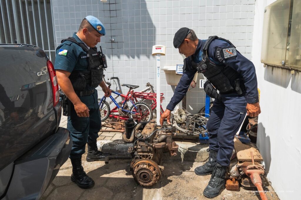 Durante esta etapa, sete pontos foram fiscalizados. Um deles está localizado na avenida Caracaraí, no bairro 13 de Setembro, onde equipes apreenderam itens sem documentação, como motor de carro, peças metálicas, motor de rabeta e balanças, além de suportes de placas de trânsito.