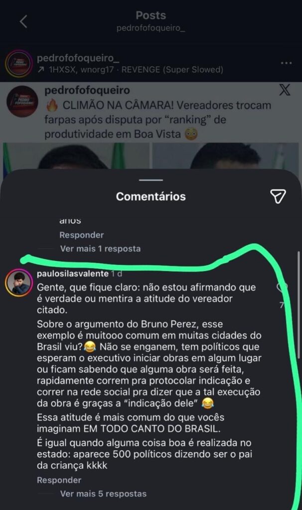 A discussão entre os dois vereadores, ganhou repercussão nas páginas de noticias de Roraima, e em uma delas um internauta escreveu: “Essa atitude é mais comum do que vocês imaginam em todo o canto do Brasil”.