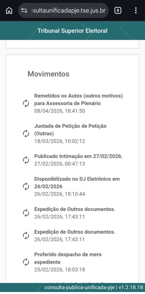 Com a nova movimentação, a presidente do TSE, ministra Carmem Lúcia, pode pautar o processo a qualquer momento.